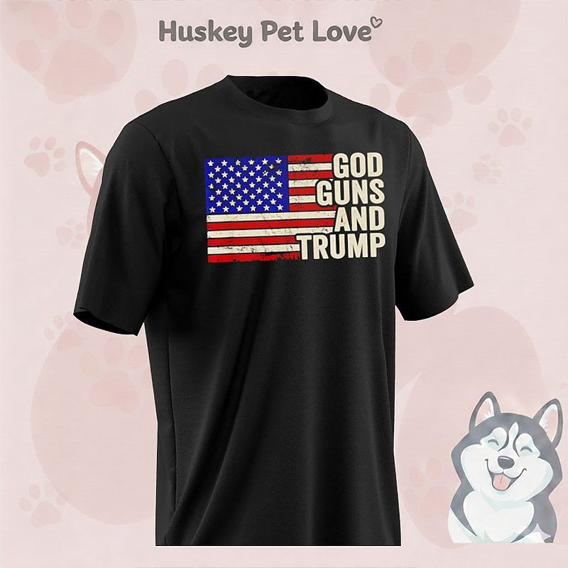 Be the first to review “God Guns And Trump Republican USA Flag Retro T-Shirt”