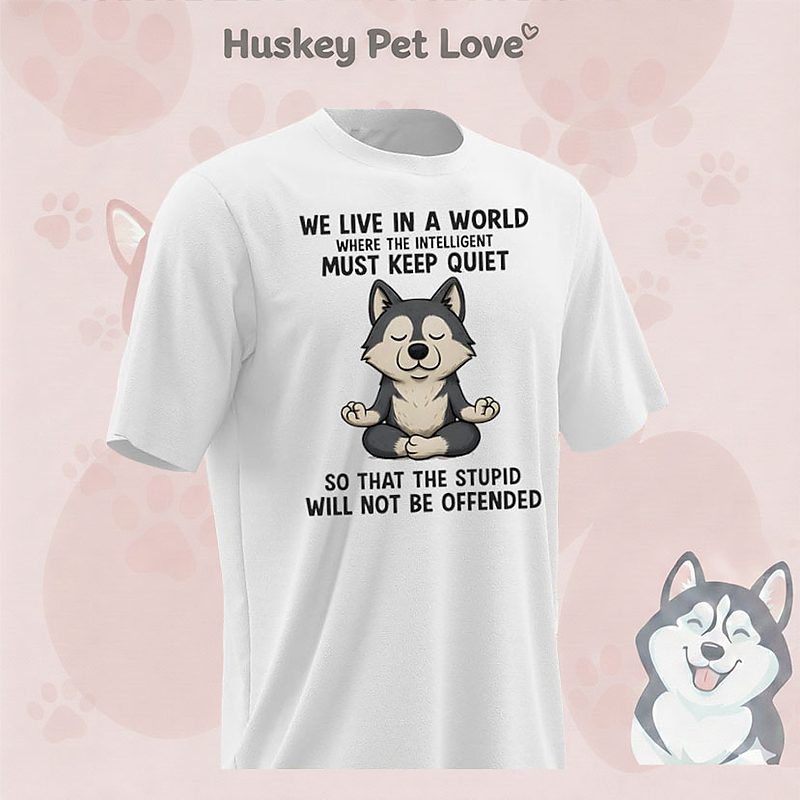 Husky Dog We Life In A World Where The Intelligent Must Keep Quiet So That The Stupid Will Not Be Offended T-Shirt