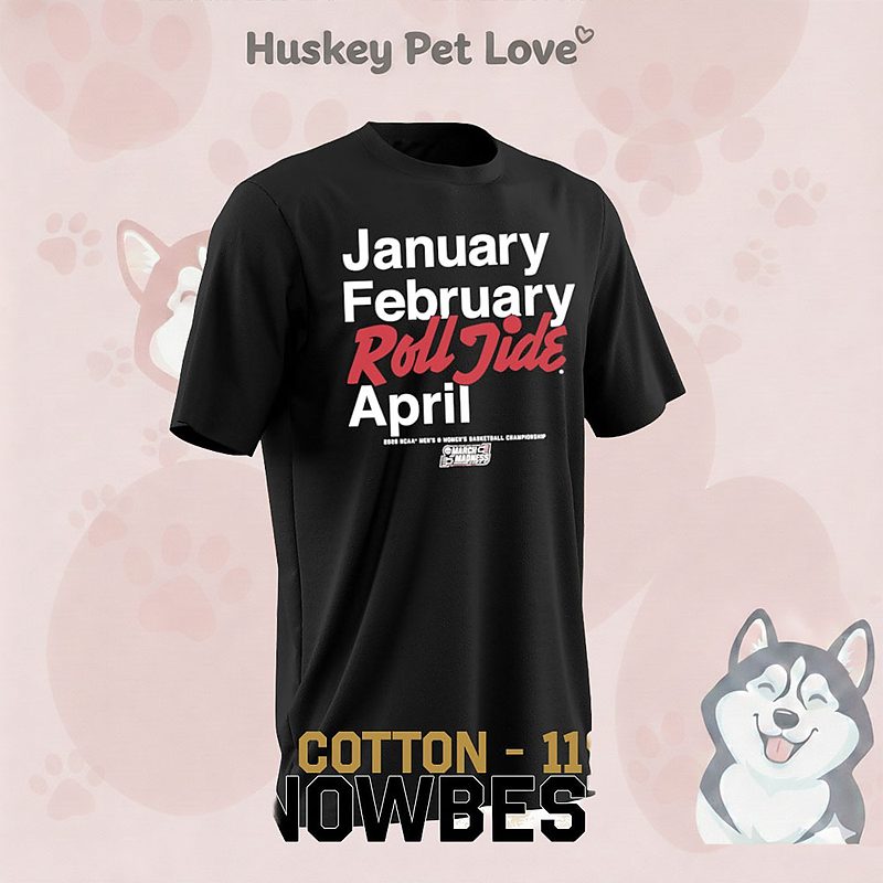 Explore the trending t-shirt that everyone’s talking about! Check this January February Roll Tide April Alabama Crimson Tide March Madness 2026 Men’s Women’s Basketball T-Shirt.