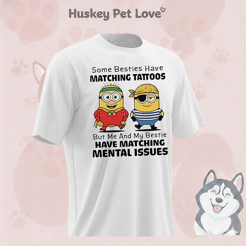 Explore the trending t-shirt that everyone’s talking about! Check this Minion Some Besties Have Matching Tattoos But Me And My Bestie Have Matching Mental Issues T-Shirt.