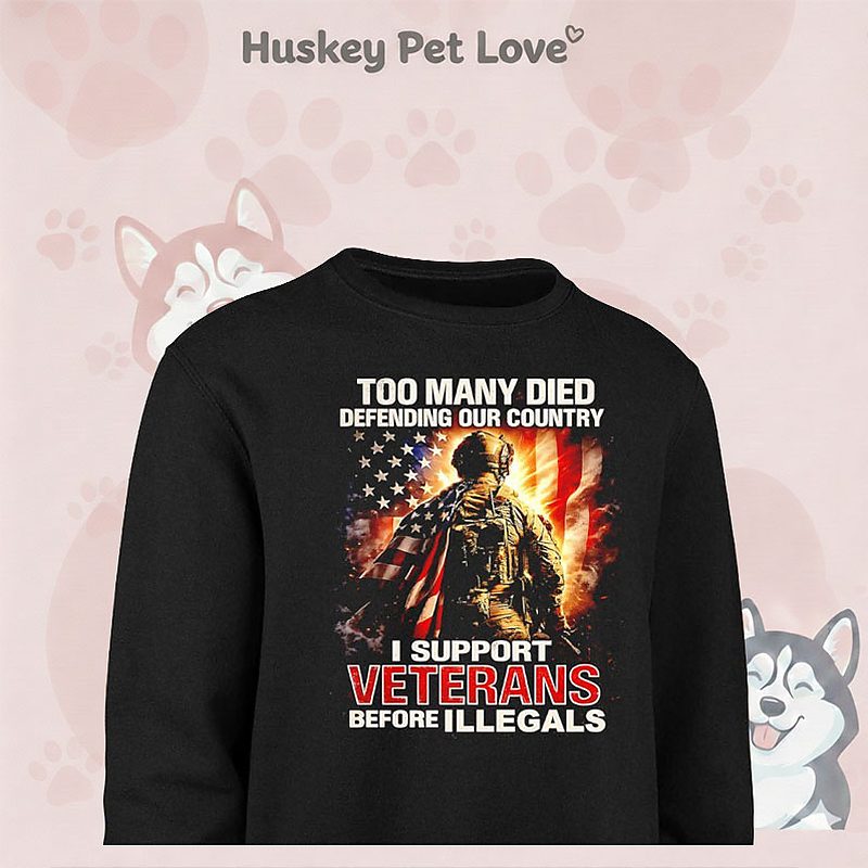 Too Many Died Defending Our Country I Support Veterans Before Illegals T-Shirt